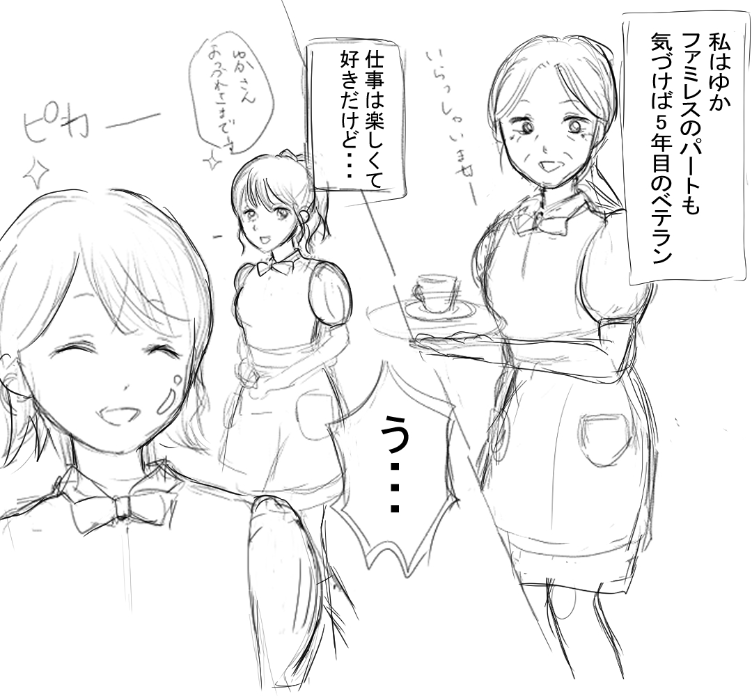 ファミレスの制服が似合わない。。